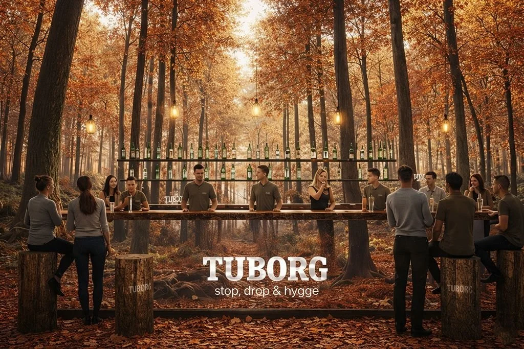 An immersive installation with evolving projections, and relaxing nature sounds, designed as a post-work space where people can unwind and enjoy a Tuborg.